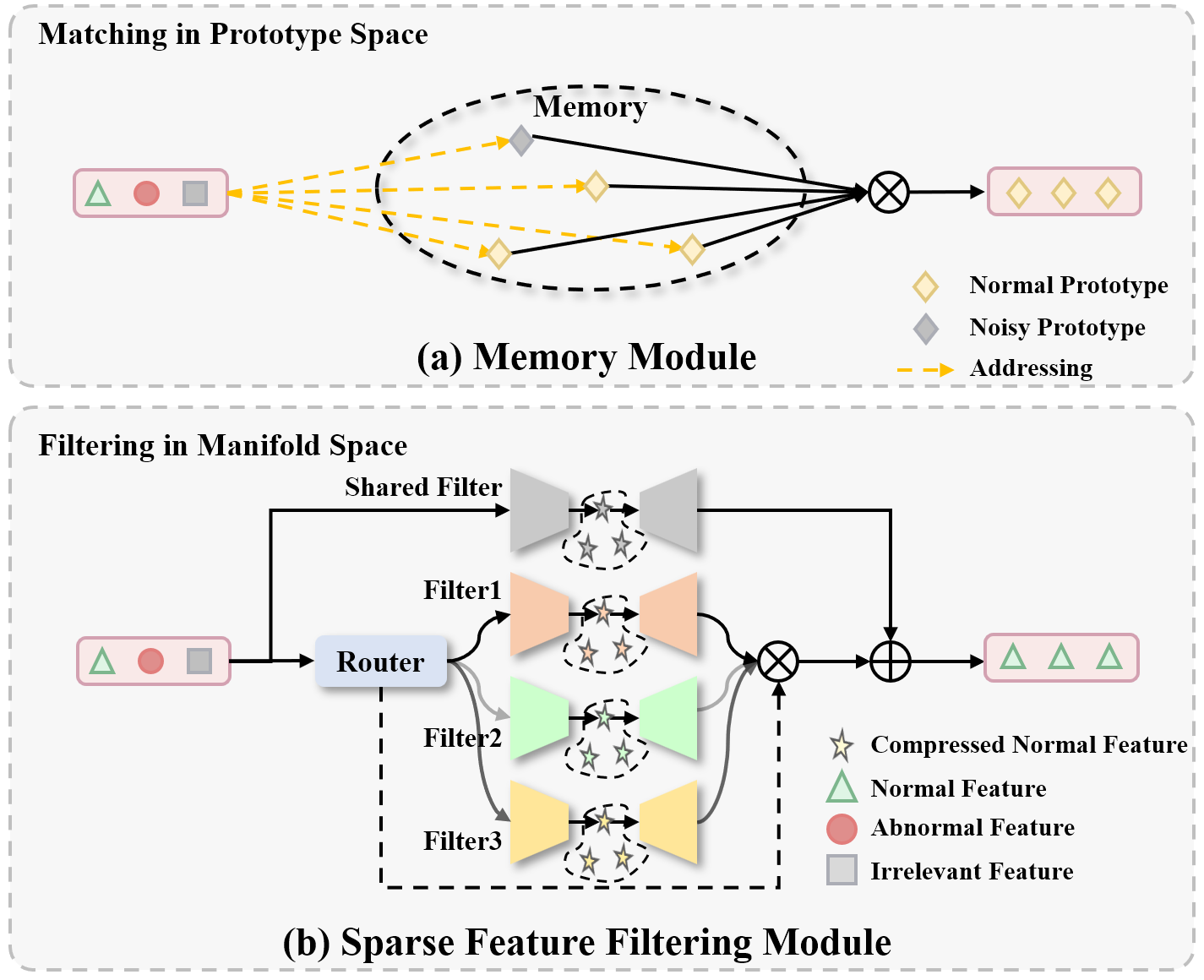 Semi-supervised video anomaly detection methods face two critical challenges: (1) Strong generalization blurs the boundary between normal and abnormal patterns. Although existing approaches attempt to alleviate this issue using memory modules, their rigid prototype-matching process limits adaptability to diverse scenarios; (2) Relying solely on low-level appearance and motion cues makes it difficult to perceive high-level semantic anomalies in complex scenes. To address these limitations, we propose SIB-VAD, a novel framework based on adaptive information bottleneck filtering and semantic-aware enhancement. We propose the Sparse Feature Filtering Module (SFFM) to replace traditional memory modules. It compresses normal features directly into a low-dimensional manifold based on the information bottleneck principle and uses an adaptive routing mechanism to dynamically select the most suitable normal bottleneck subspace. Trained only on normal data, SFFMs only learn normal low-dimensional manifolds, while abnormal features deviate and are effectively filtered. Unlike memory modules, SFFM directly removes abnormal information and adaptively handles scene variations. To improve semantic awareness, we further design a multimodal prediction framework that jointly models appearance, motion, and semantics. Through multimodal consistency constraints and joint error computation, it achieves more robust VAD performance. Experimental results validate the effectiveness of our feature filtering paradigm based on semantics-aware information bottleneck.